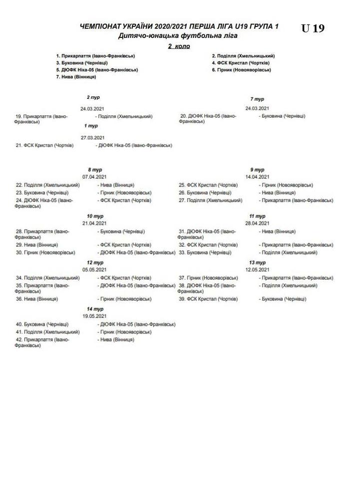 Календар ДЮФЛ України (U-19) за участю чортківського "Кристала"