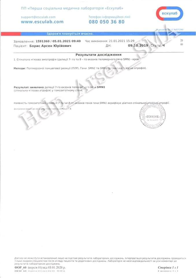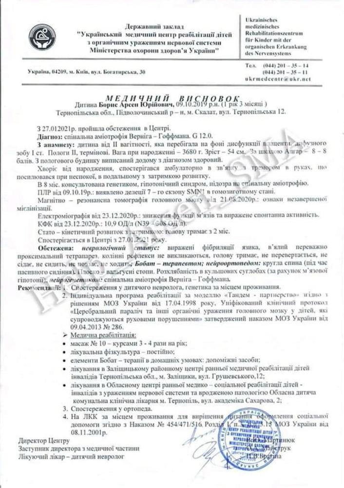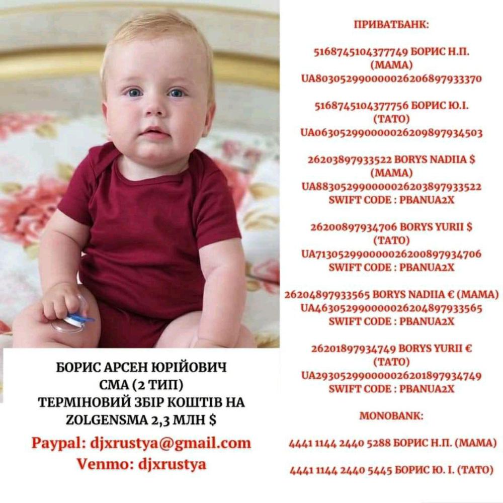 У родині багаторічного футболіста ФК «Скалат» Юрія Бориса сталося велике горе. Його синочку Арсенчику, якому 1 рік і чотири місяці, 21 січня поставили діагноз СМА.