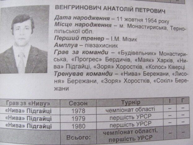 Відомому у минулому футболісту бережанської «Маяка» та підгаєцької “Ниви”, а згодом тренеру бережанської “Ниви” Анатолію Петровичу Венгриновичу, котрий все своє свідоме життя віддав футболу, прикро чути, що Бережани можуть залишитися без великого футболу.