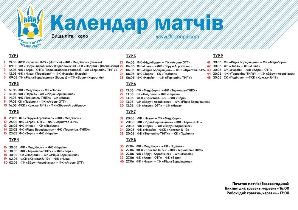 Календар матчів вищої ліги чемпіонату Тернопільської області (1 коло)