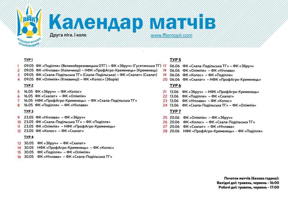 Календар матчів другої ліги чемпіонату Тернопільської області 2021 року (1 коло)