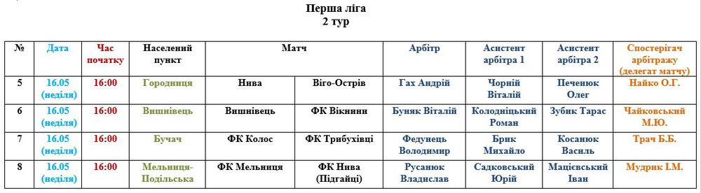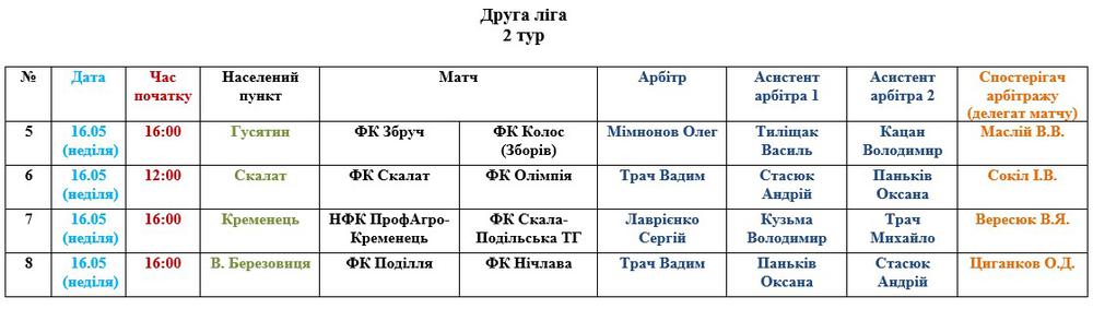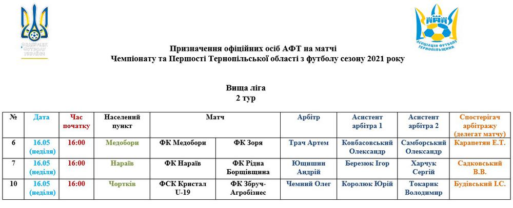 Призначення офіційних осіб АФТ на матчі 16 травня