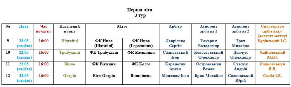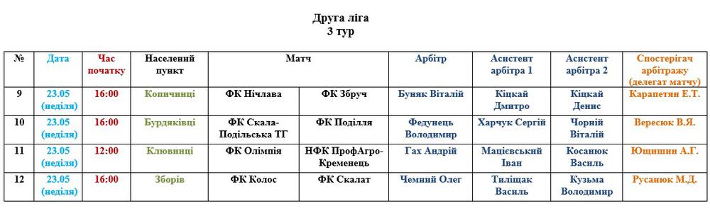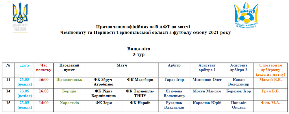 Призначення офіційних осіб АФТ на матчі 23 травня