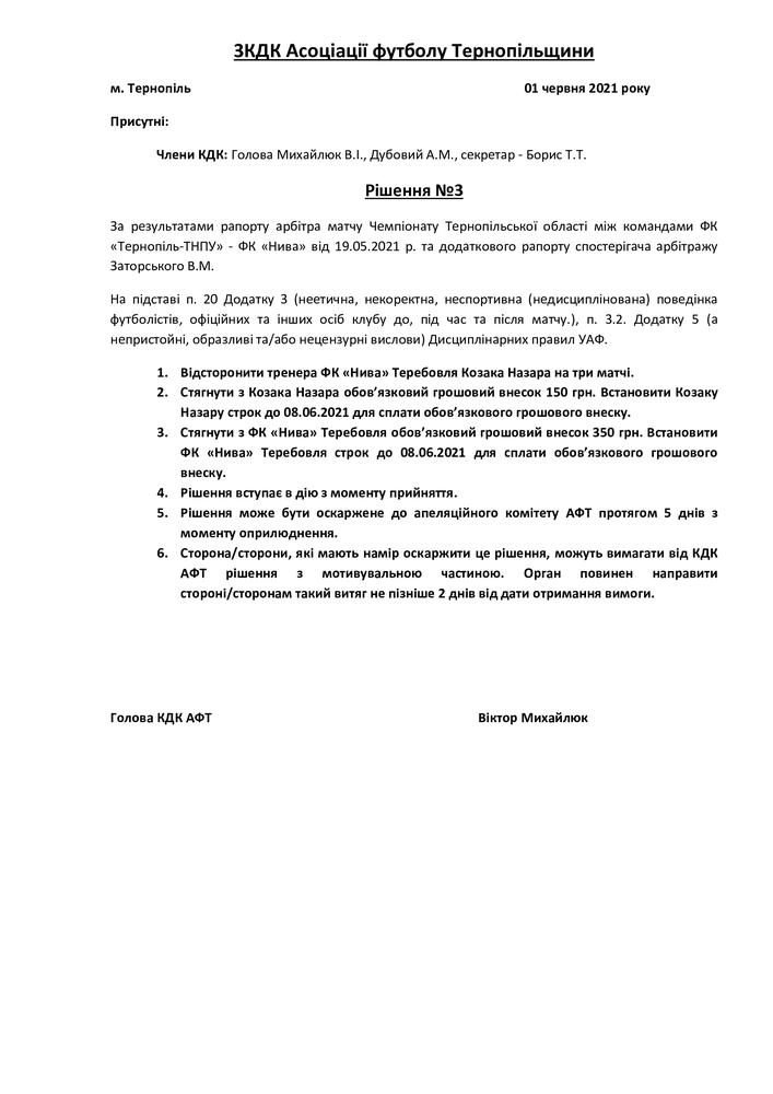 Рішення КДК Асоціації футболу Тернопільщини №3/2021