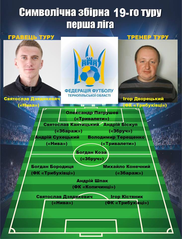 Пропонуємо до Вашої уваги символічну збірну 19-го туру першої ліги чемпіонату Тернопільської області з футболу 2017 року.