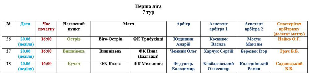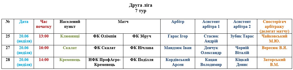 Призначення офіційних осіб АФТ на матчі 20 червня