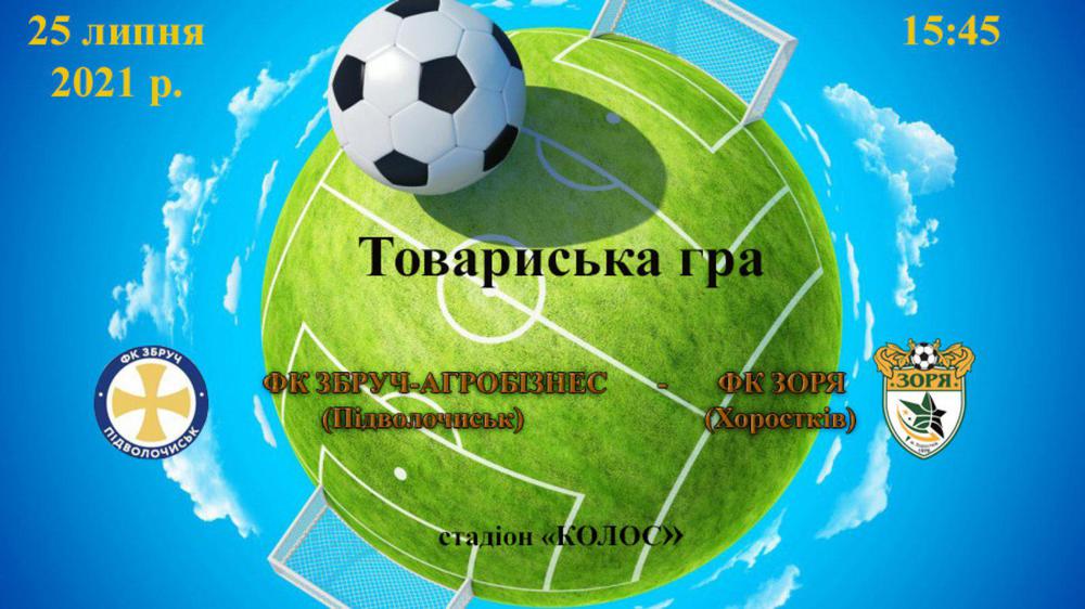 Сьогодні, 25 липня, у Підволочиську спаринг провели учасники вищої ліги чемпіонату Тернопільської області. Місцевий «Збруч-Агробізнес» приймав хоростківську «Зорю» і святкував перемогу – 2:1.