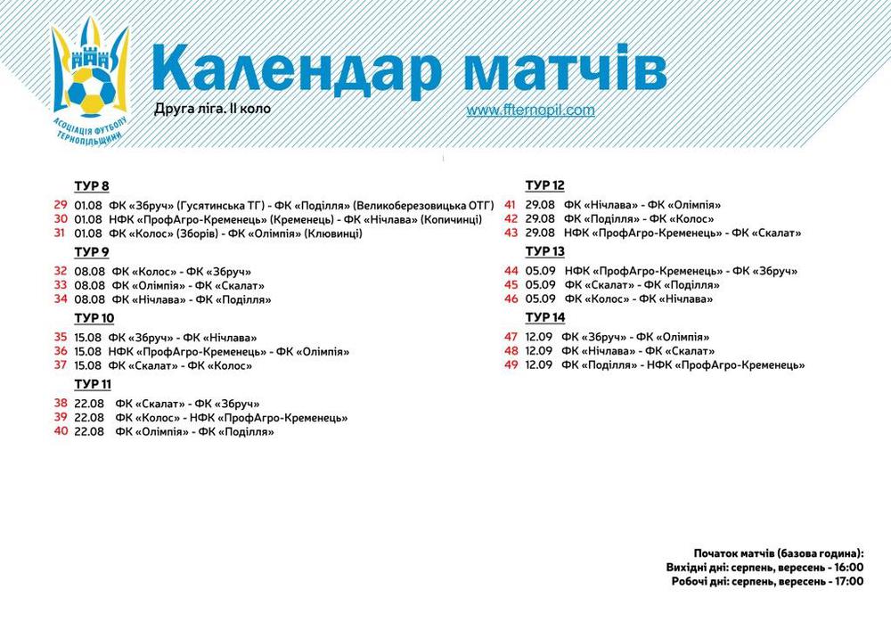 Календар матчів чемпіонату області 2021 р. Друга ліга. Друге коло