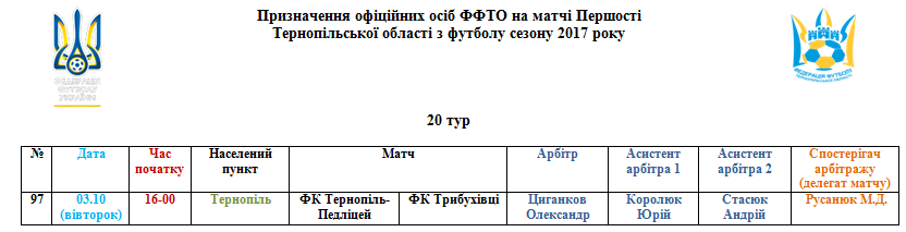 Призначення офіційних осіб ФФТО на поєдинки 03 жовтня
