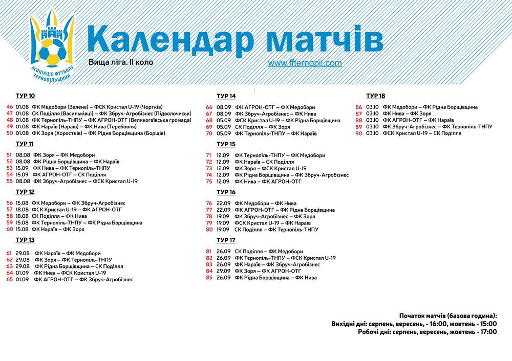 КАЛЕНДАР МАТЧІВ ЧЕМПІОНАТУ ОБЛАСТІ 2021 Р. ВИЩА ЛІГА. ДРУГЕ КОЛО