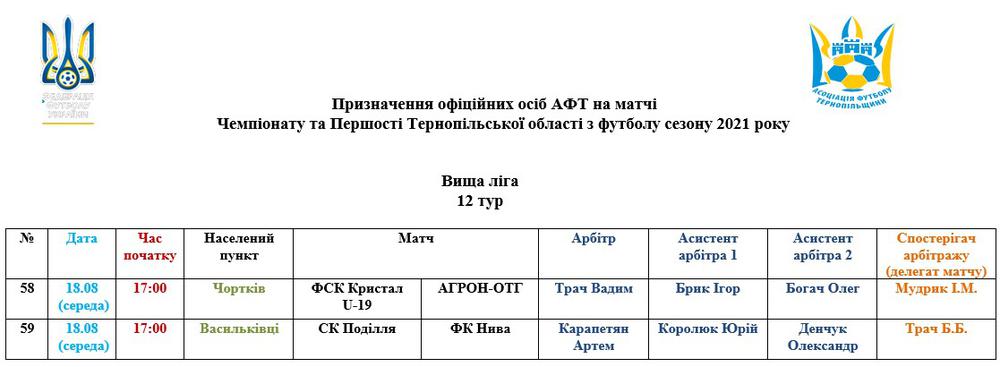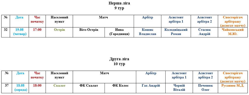 Призначення офіційних осіб АФТ на матчі 18 серпня