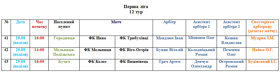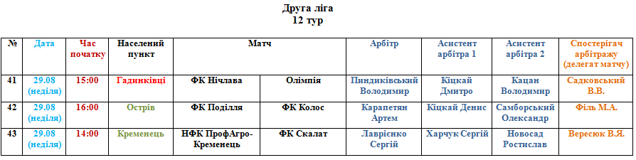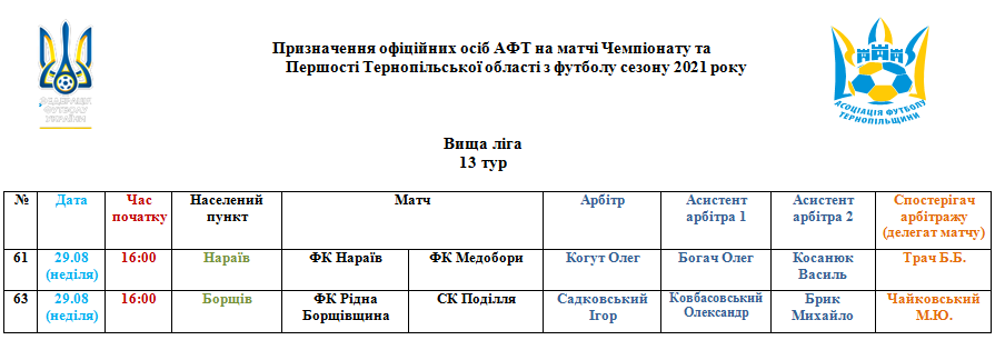 Призначення офіційних осіб АФТ на матчі 29 серпня