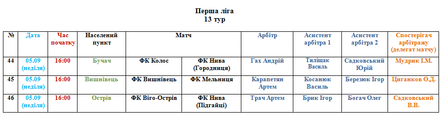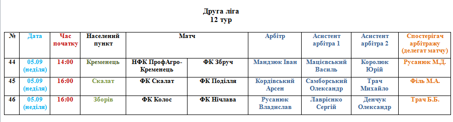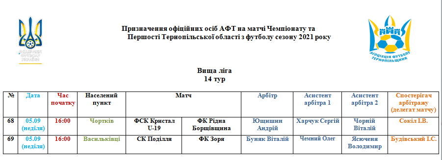 Призначення офіційних осіб АФТ на матчі 05 вересня