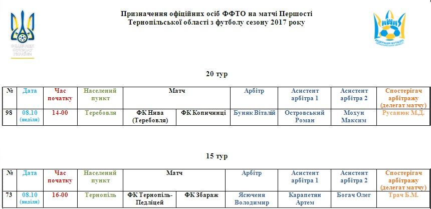 Призначення офіційних осіб ФФТО на матчі Першості Тернопільської області з футболу
