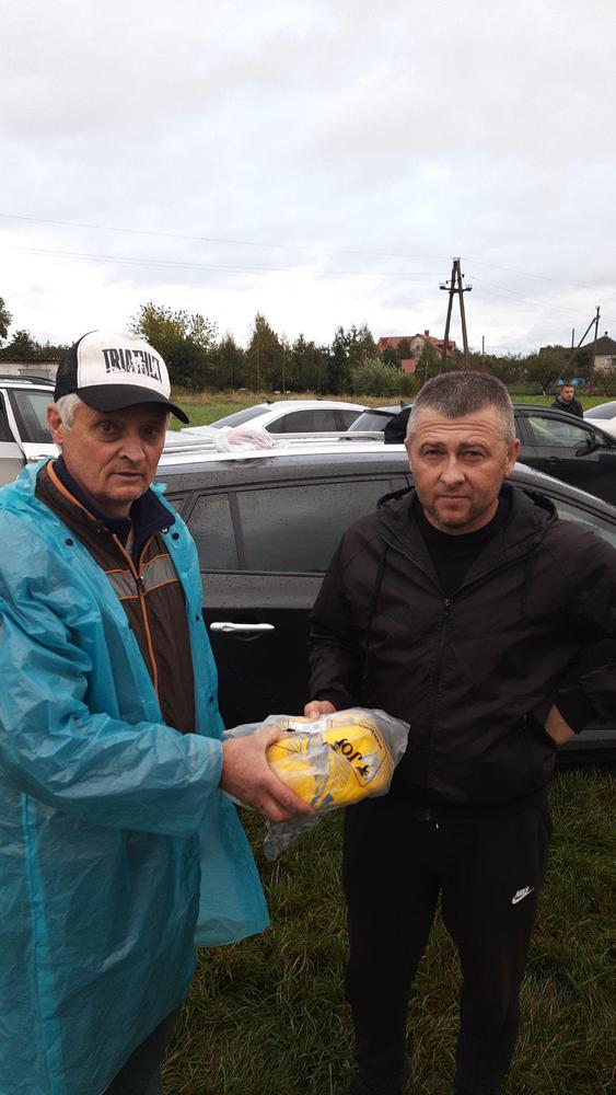 На фото: Кращі гравці у складі команд-господарів - Сергій Якимович (ФК "Гаї Шевченківські") та Руслан П'ятничко («Агрон-Агропродсервіс-Ветеран 40+») отримують футбольні м'ячі від Асоціації футболу Тернопільщини.