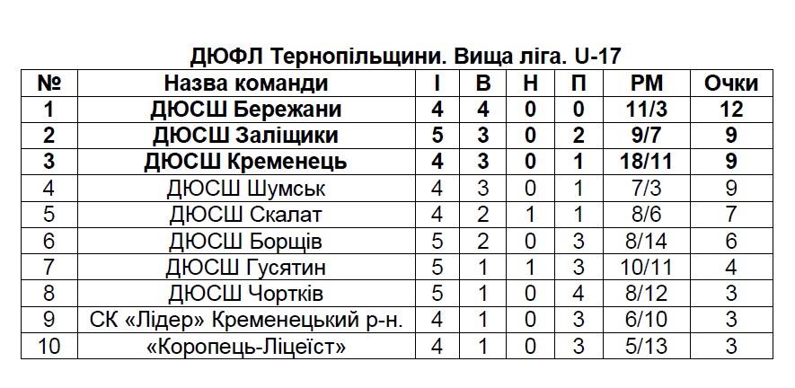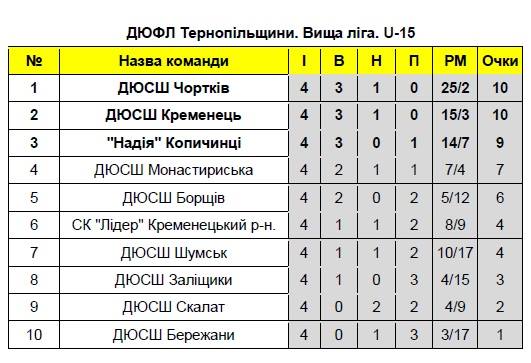 Турнірне становище команд у ДЮФЛ Тернопільщини. Вища ліга. U-15, 17