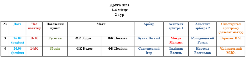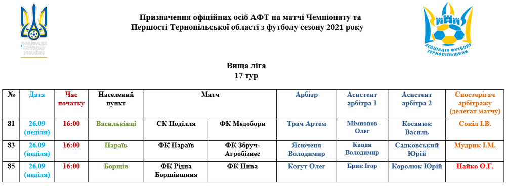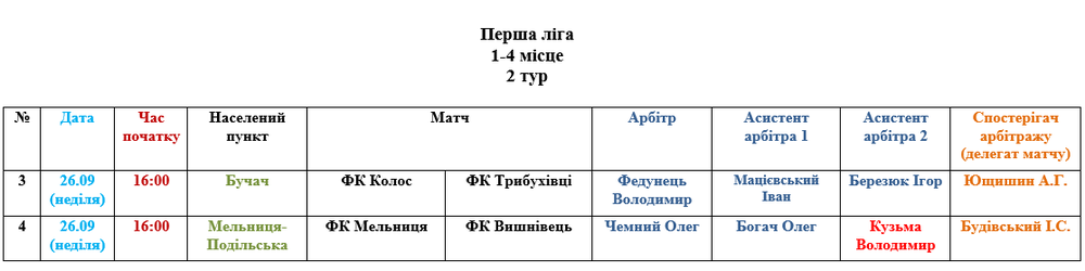 Призначення офіційних осіб АФТ на матчі 26 вересня