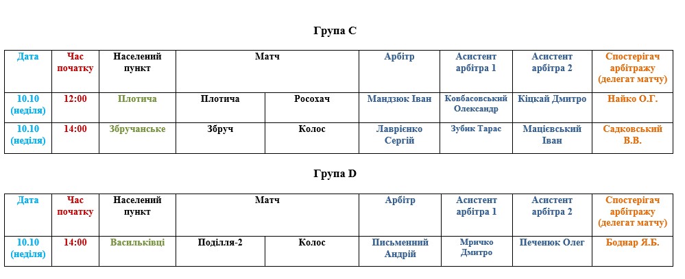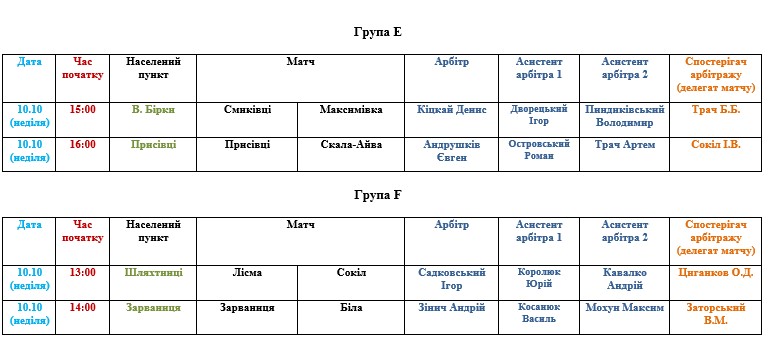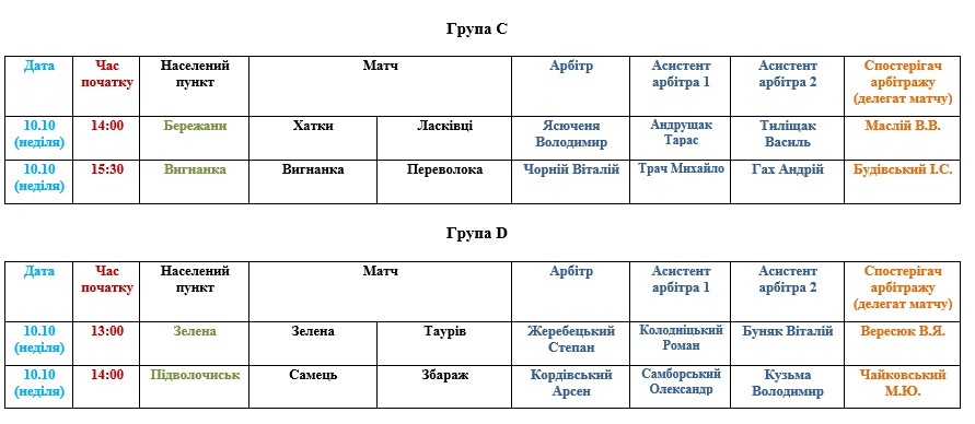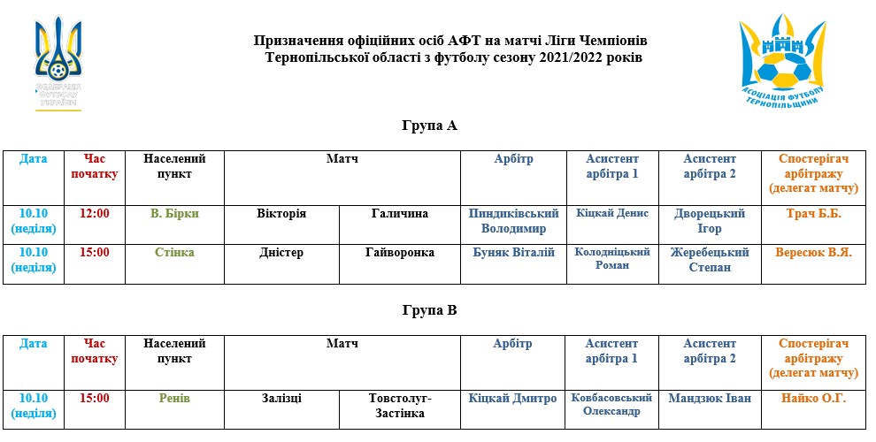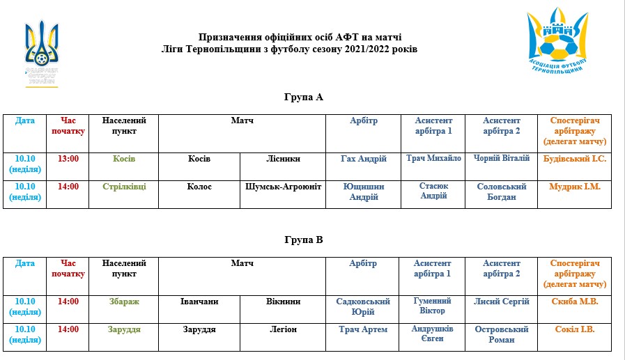Призначення офіційних осіб АФТ на матчі 10 жовтня