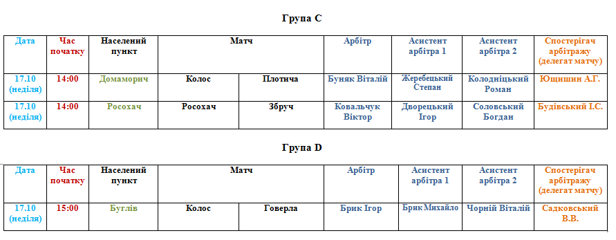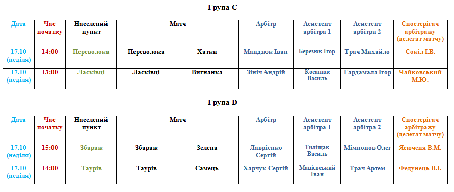 Призначення офіційних осіб АФТ на матчі 17 жовтня