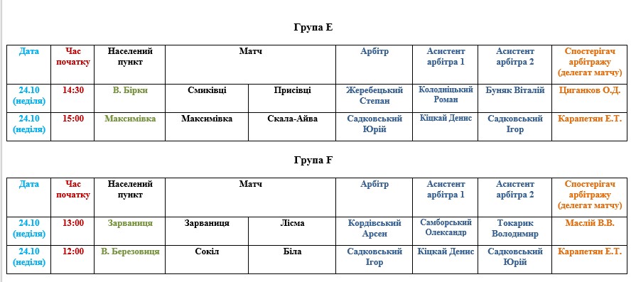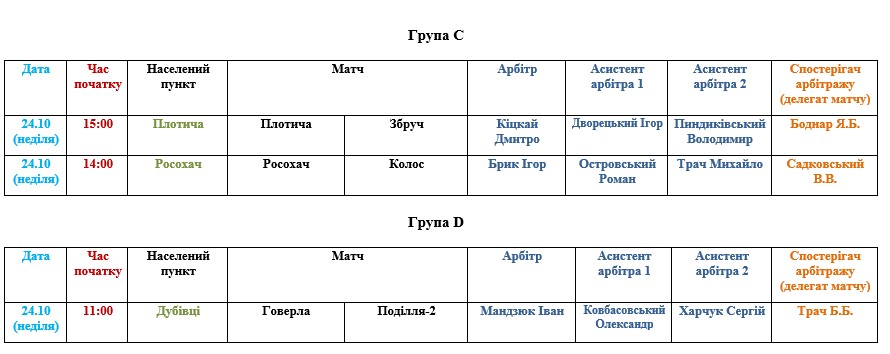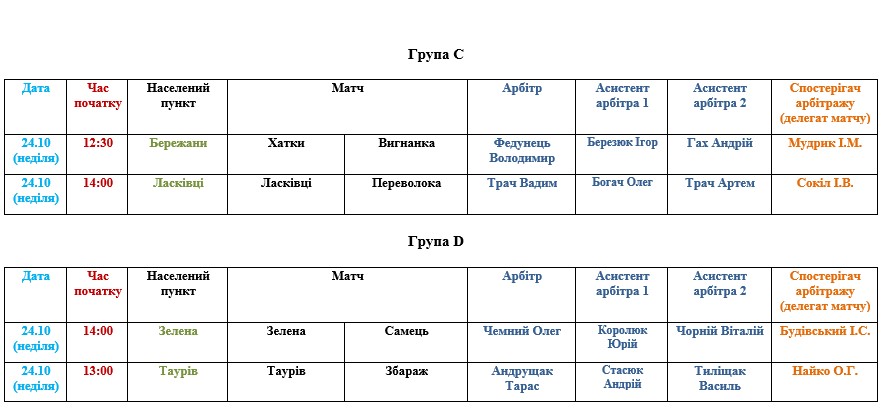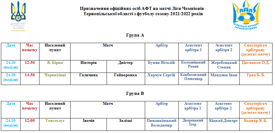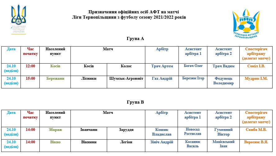 Призначення офіційних осіб АФТ на матчі 24 жовтня