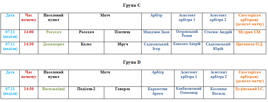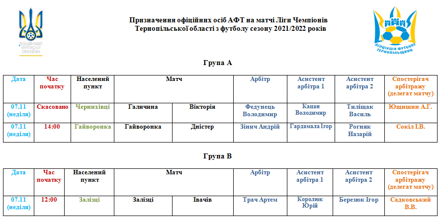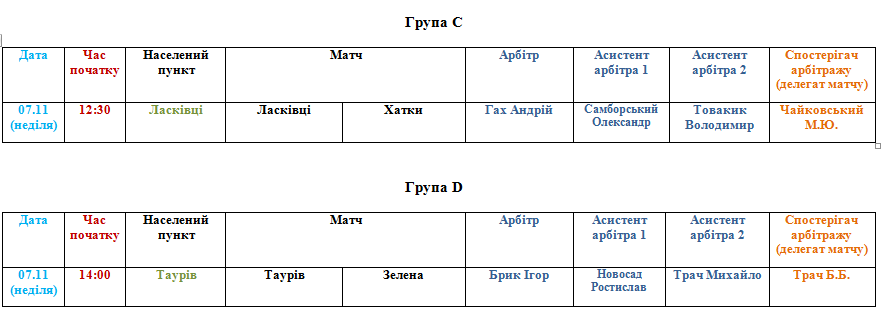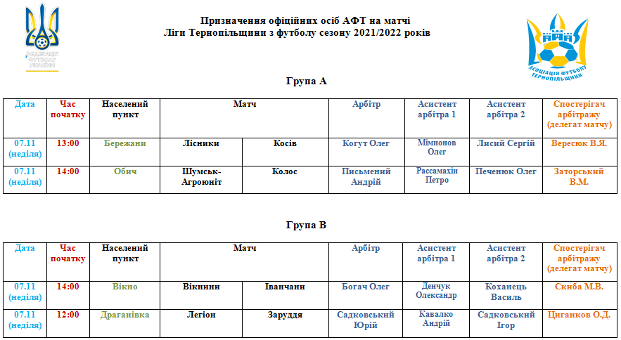 Призначення офіційних осіб АФТ на матчі 07 листопада