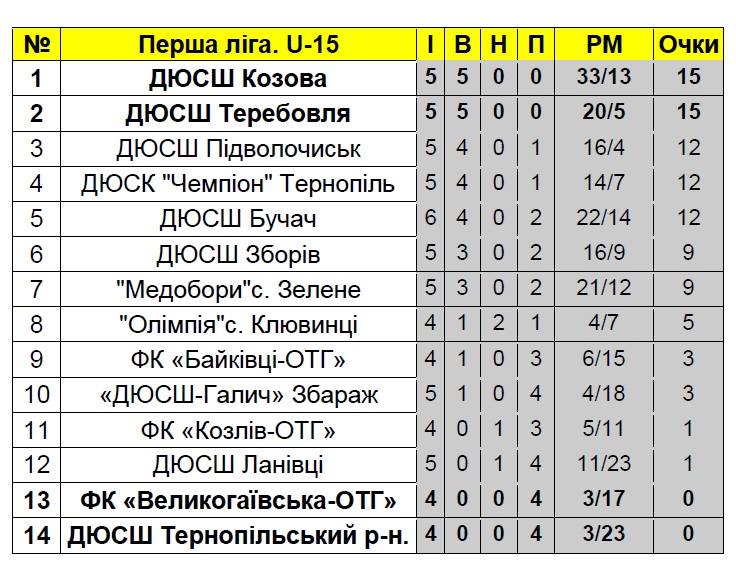 ДЮФЛ Тернопільщини. Турнірна таблиця. Перша ліга