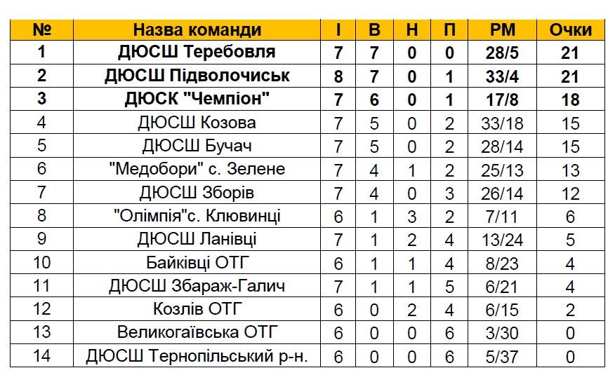 ДЮСШ (Зборів) – ДЮСШ (Тернопільський р-н.) – 10:1.