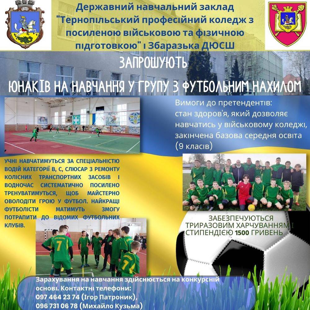 У Збаражі запрошують юнаків на навчання у групу з футбольним нахилом