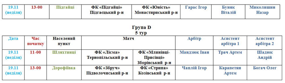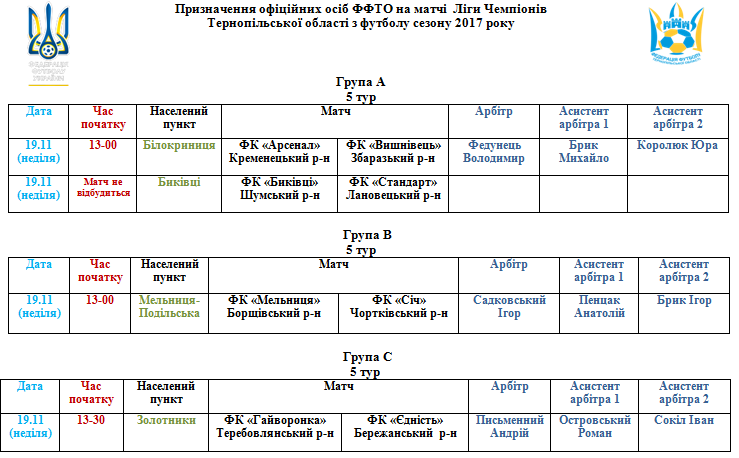 Призначення офіційних осіб ФФТО на матчі Ліги Чемпіонів Тернопільської області (зміни)