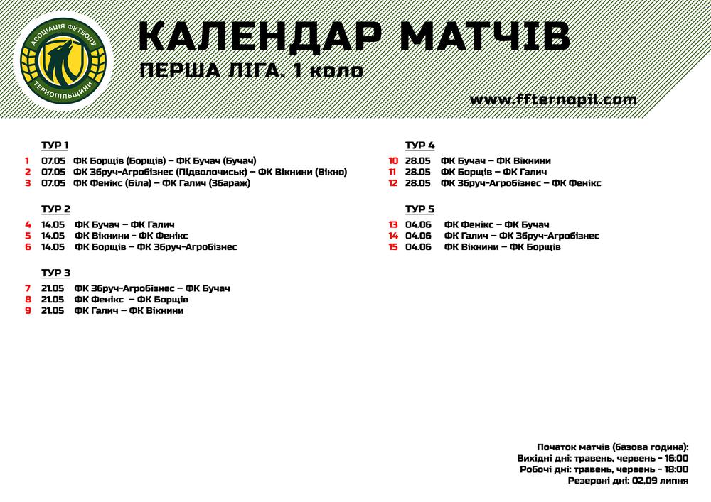 Календар матчів першої ліги чемпіонату Тернопільської області 2023 року. Перше коло