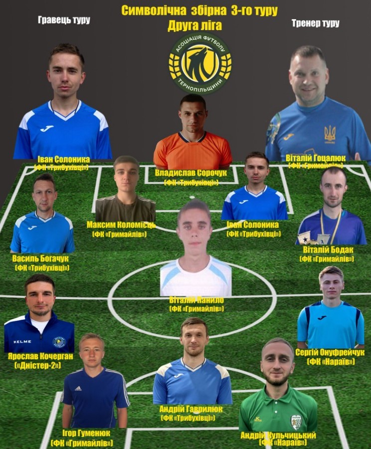Пропонуємо до Вашої уваги символічну збірну третього туру другої ліги чемпіонату Тернопільської області 2023 року за версією Асоціації футболу Тернопільщини.