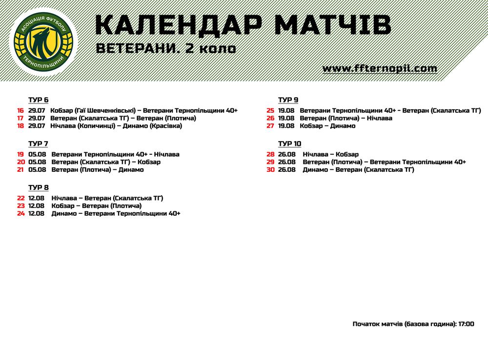Календар чемпіонату Тернопільської області серед ветеранів. Друге коло