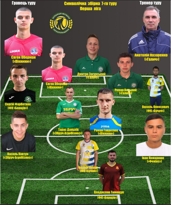 2023-08-12 18:05:02.000000Пропонуємо до Вашої уваги символічну збірну сьомого туру першої ліги чемпіонату Тернопільської області 2023 року за версією Асоціації футболу Тернопільщини.
