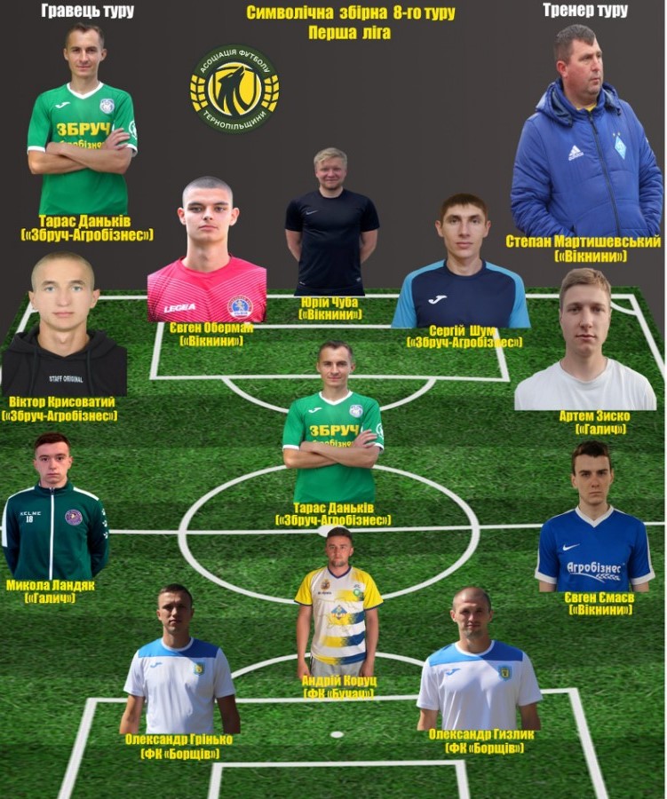 2023-08-19 11:42:58.000000Пропонуємо до Вашої уваги символічну збірну восьмого туру першої ліги чемпіонату Тернопільської області 2023 року за версією Асоціації футболу Тернопільщини.