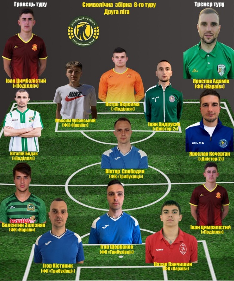 2023-08-19 12:01:59.000000Пропонуємо до Вашої уваги символічну збірну восьмого туру другої ліги чемпіонату Тернопільської області 2023 року за версією Асоціації футболу Тернопільщини.