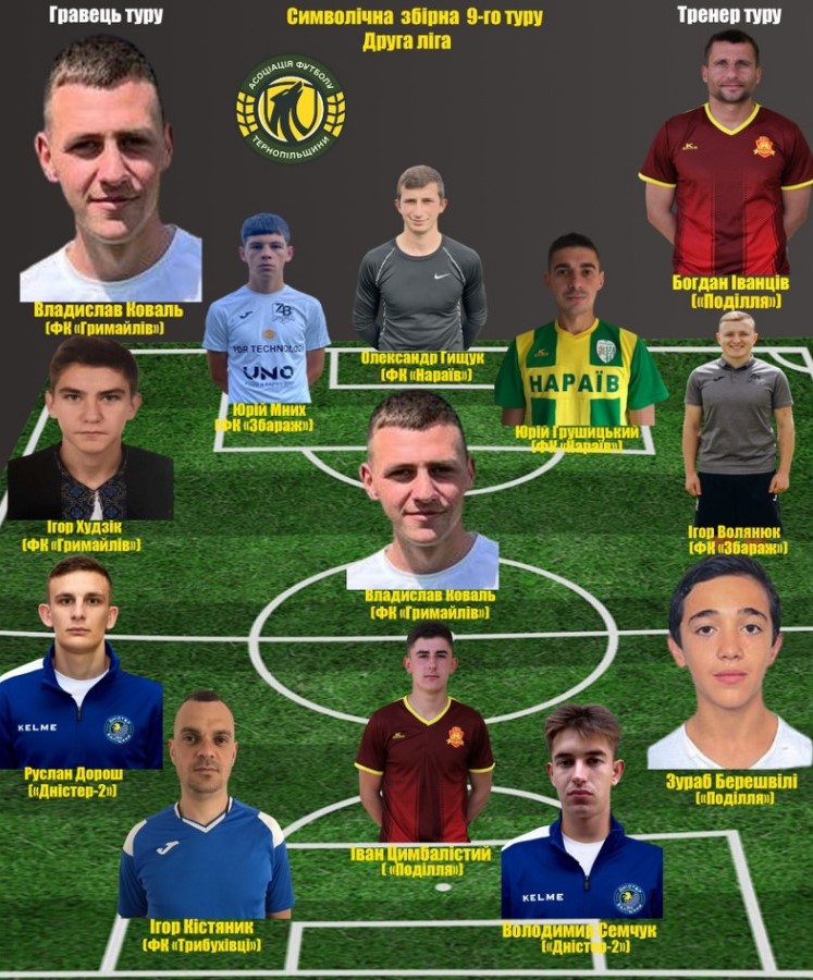 2023-08-26 08:50:35.000000Пропонуємо до Вашої уваги символічну збірну девятого туру другої ліги чемпіонату Тернопільської області 2023 року за версією Асоціації футболу Тернопільщини.
