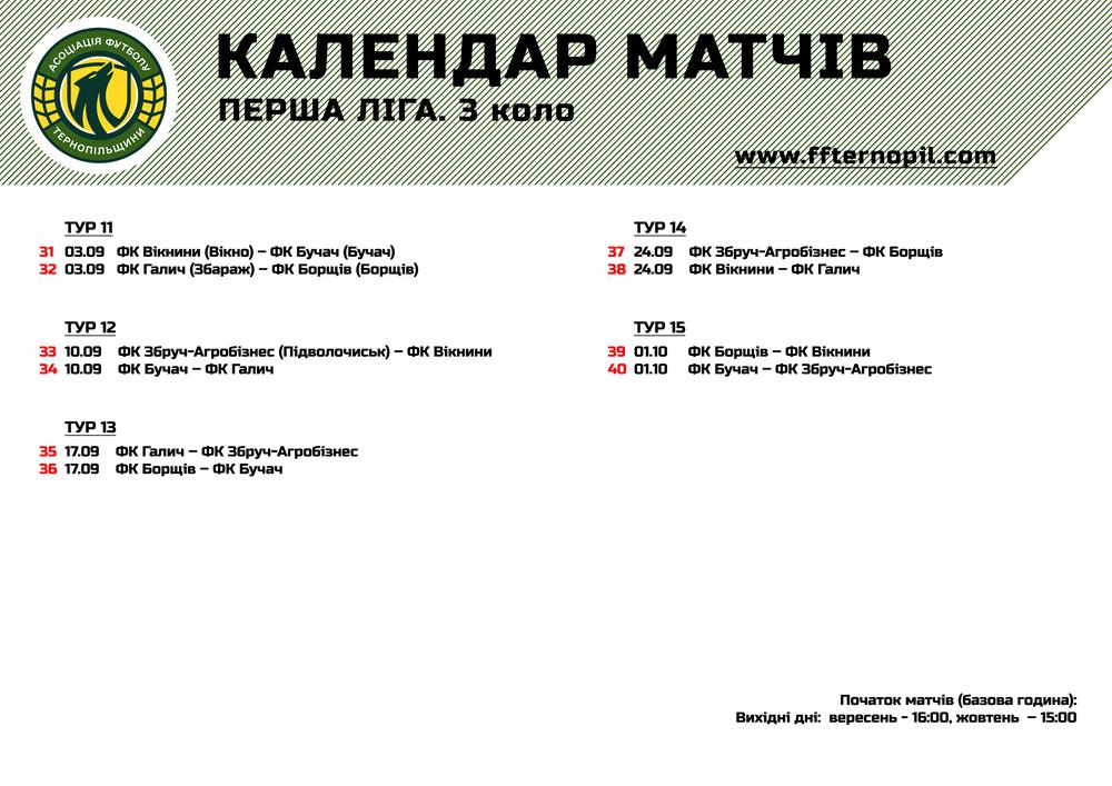 Календар матчів першої ліги чемпіонату Тернопільської області 2023 року. Третє коло