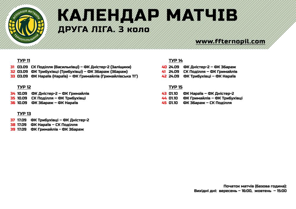 Календар матчів другої ліги чемпіонату Тернопільської області 2023 року. Третє коло