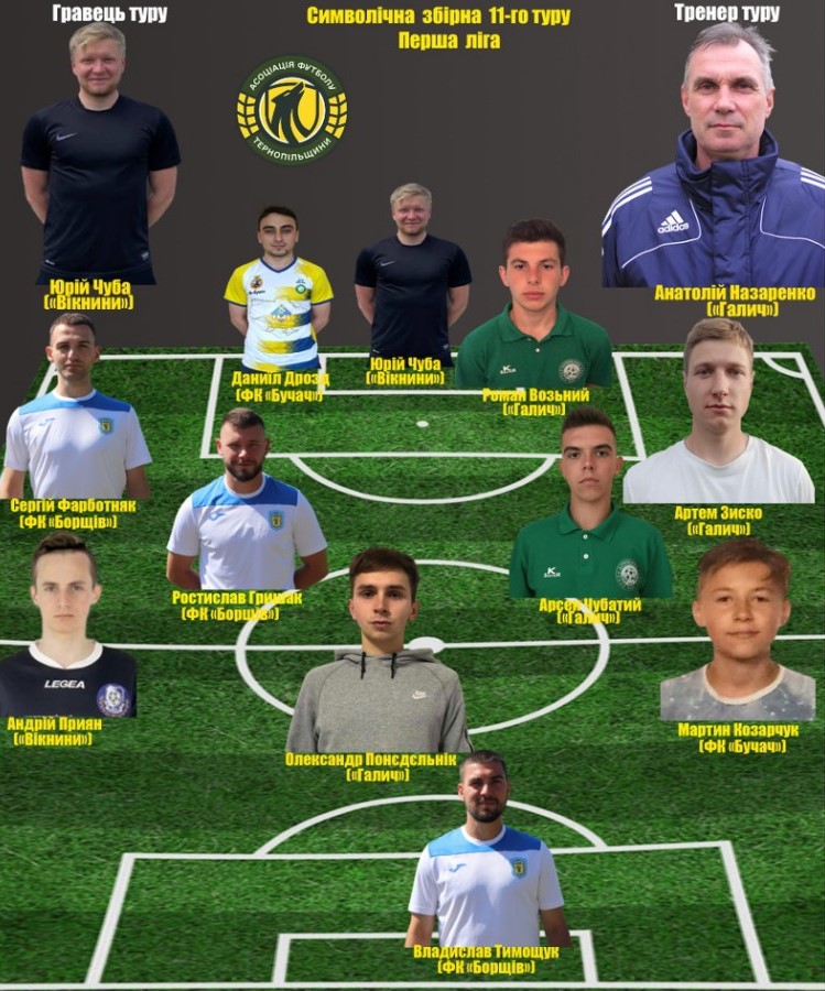 2023-09-09 09:53:01.000000Пропонуємо до Вашої уваги символічну збірну одинадцятого туру першої ліги чемпіонату Тернопільської області 2023 року за версією Асоціації футболу Тернопільщини.