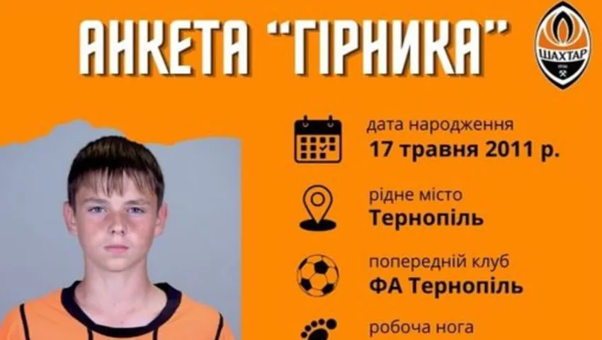 Вихованець тернопільського футболу заявлений за донецький «Шахтар»