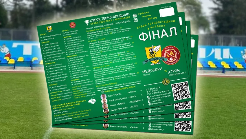 До фіналу кубка Тернопільщини підготовлено матчеву програмку